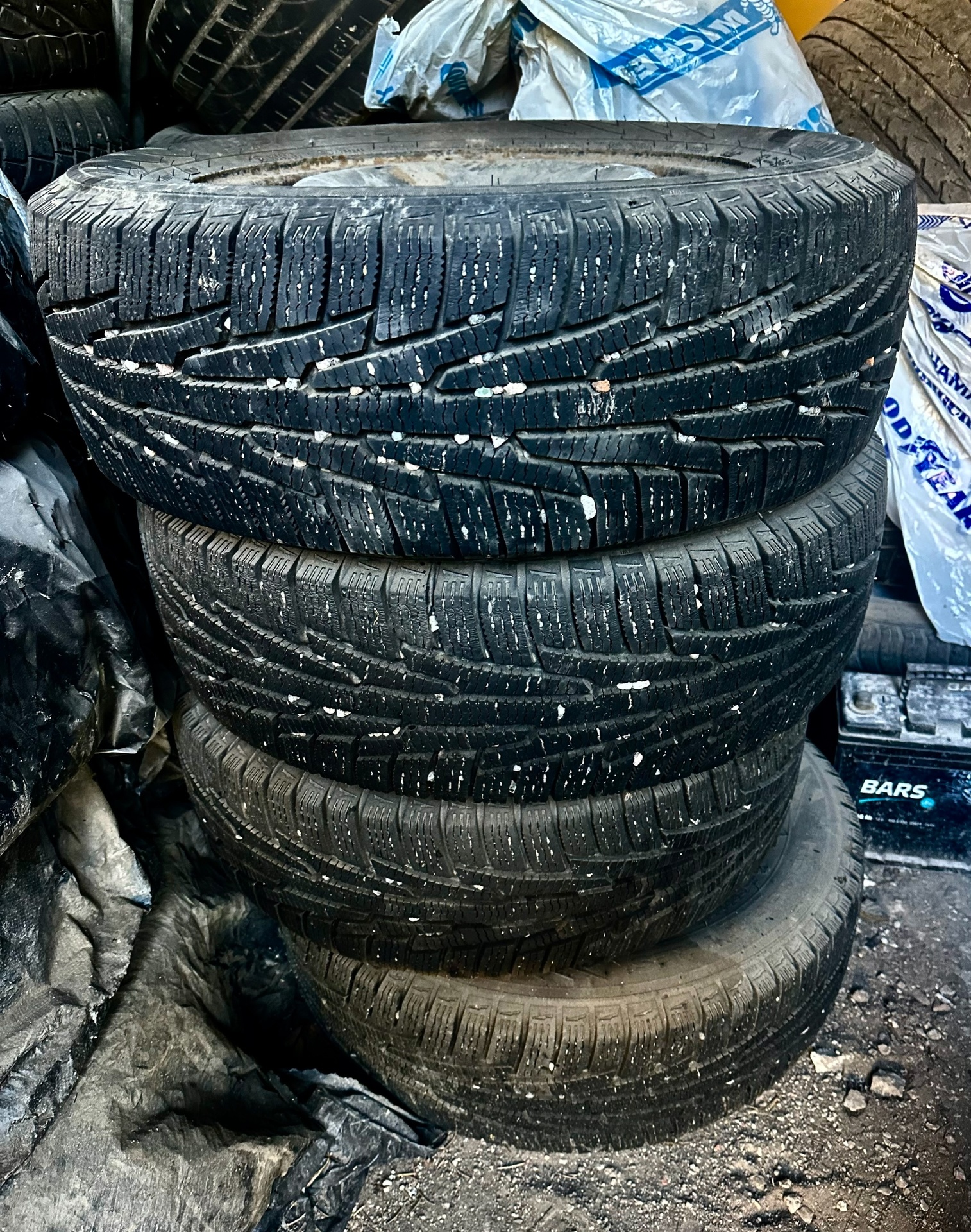 Второй комплект Просто 4 колеса без дисков шиповка 205/55 R16 в хорошем состоянии продается только комплектом