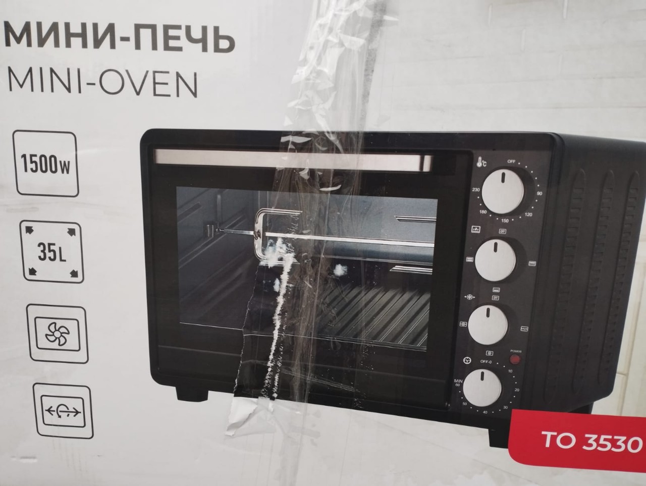 Мини печь- новая запечатанная- конвекция, гриль вертел-9500