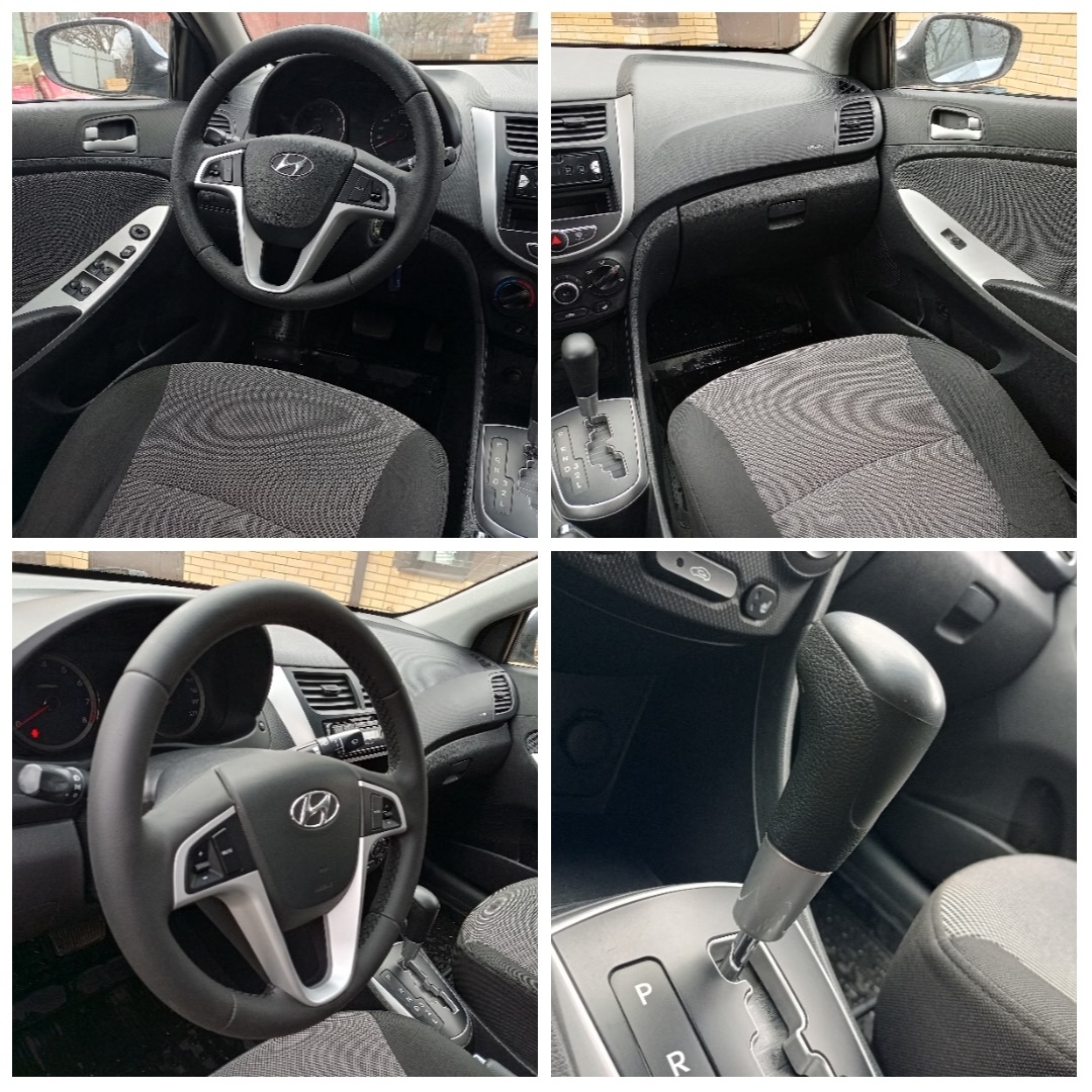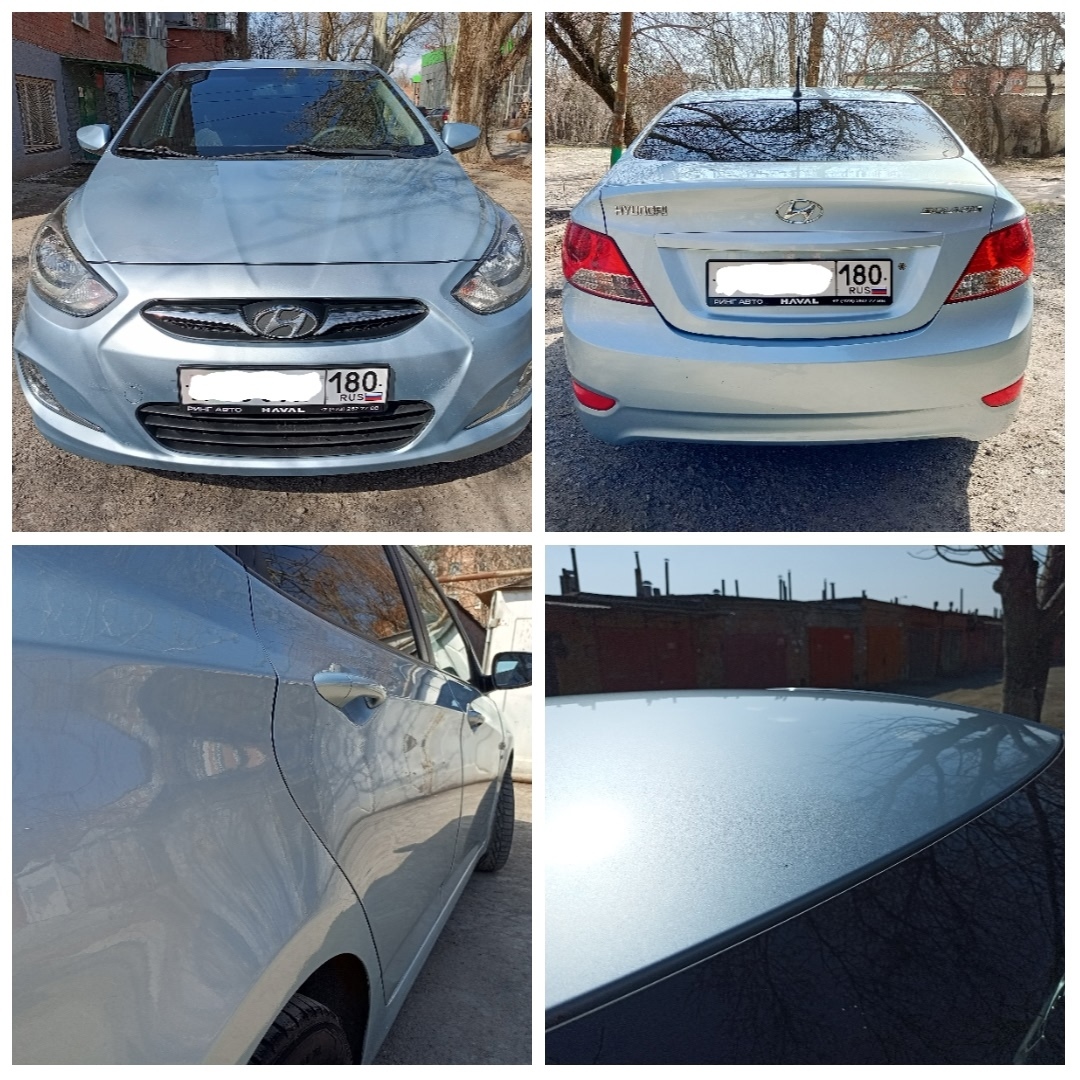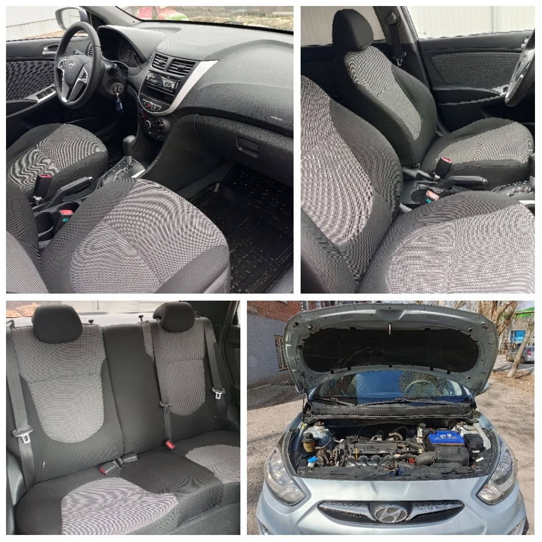 Hyundai Solaris 2012 год в ДТП не участвовал. Я хозяин и оформлена тоже на меня. Ухоженный автомобиль. Мотор 1.6, коробка автомат работают в паре очень динамично и без проблем. Коробка работает как надо без толчков пинков.